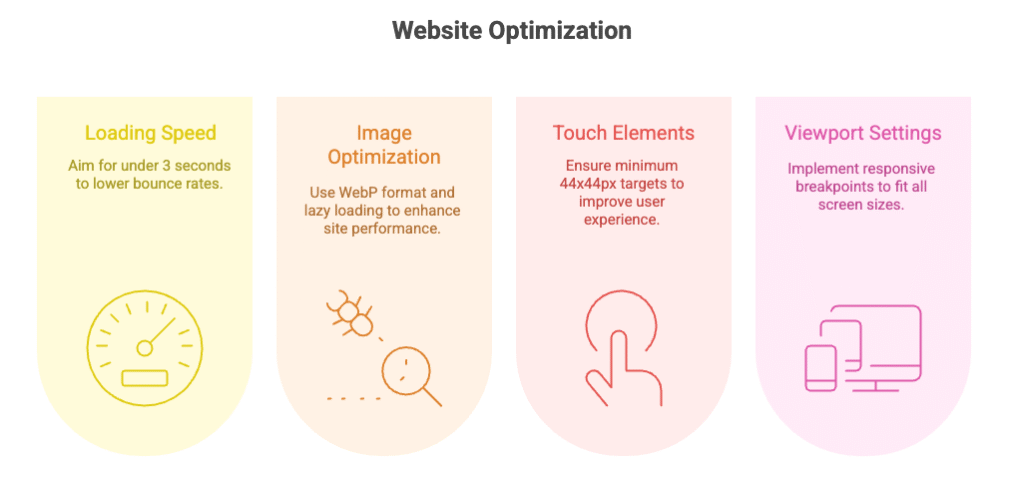 Mobile optimization is a must in Dubai, where over 80% of searches happen on smartphones [9]. Here are some key mobile design features to focus on:
